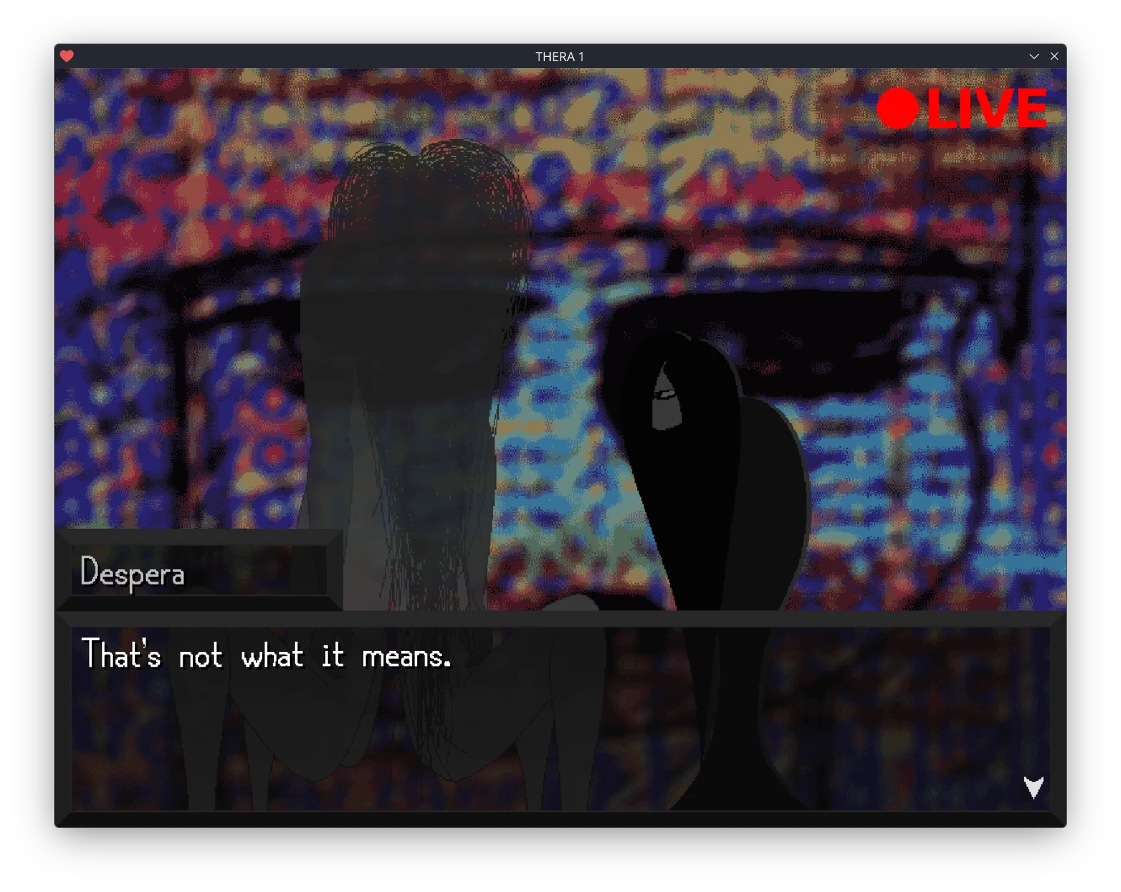 So, if you've played THERA 2, you probably noticed the window is locked to 800x600, with both resizing the window and making it go fullscreen disabled. I made that change ages ago, and I never really noticed it until recently, when I replaced my laptop and discovered just how tiny it looks on a screen with a half-decent resolution.